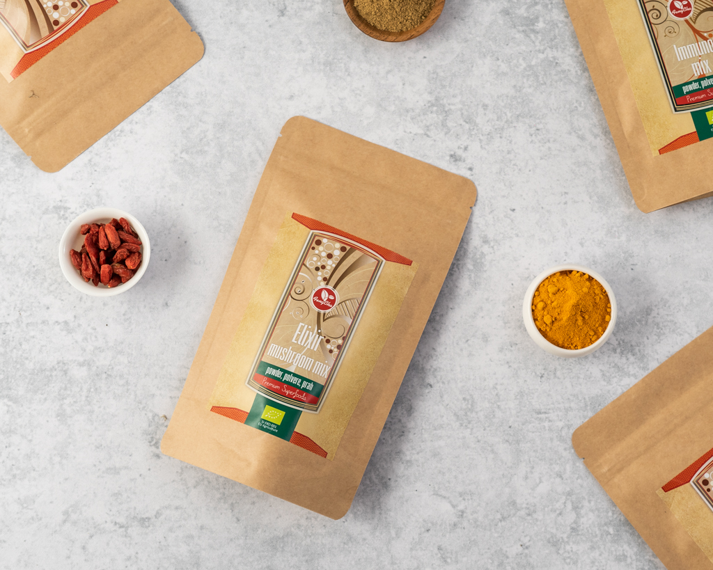 Elixir mix is ​​actually intended for everyone who wants to improve general well-being by increasing resistance to diseases, with more physical energy, by reducing the impact of stress and by preventing premature aging of the body. It is also intended for those who want to test the effectiveness of medicinal mushrooms and strengthen their body in a natural way. It is also an excellent natural food supplement, as mushrooms have high nutritional value – valuable nutrients, trace minerals, vitamins, macro minerals, fiber, protein. Medicinal mushrooms have a rich history in Chinese medicine and healing, and people are increasingly turning to nature for health.